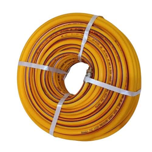 دستهبندیمشخصه فنیمقدار / توضیحات مشخصات عمومی برند کلاسیک (Classic) سایز شماره 8.5 (قطر داخلی ۸.۵ میلیمتر) نوع شیلنگ فشار قوی سمپاشی کشور سازنده ایران مشخصات ابعادی قطر داخلی ۸.۵ میلیمتر قطر خارجی ۱۴-۱۶ میلیمتر ضخامت دیواره ۲.۵-۳.۵ میلیمتر طول استاندارد ۲۰-۳۰ متر (قابل تولید در طولهای مختلف) مشخصات فنی فشار کاری ۱۵-۲۵ بار (۱۵۰-۲۵۰ متر ستون آب) فشار تست ۳۰-۴۰ بار فشار ترکیدگی ۴۵-۶۰ بار دمای کاری ۱۰- تا ۵۵+ درجه سانتیگراد جنس و ساختار جنس لایه داخلی لاستیک مصنوعی مقاوم شیمیایی جنس تقویت کننده نخ پلیاستر با تراکم متوسط جنس لایه خارجی لاستیک مقاوم در برابر سایش تعداد لایه ها ۳ لایه مقاومت شیمیایی مقاوم در برابر سموم رایج، کودهای مایع مقاوم در برابر قارچکشها و علفکشهای معمولی pH قابل تحمل ۴ تا ۱۰ اتصالات نوع اتصالات معمولاً مادگی ۱/۲ اینچ یا ۳/۴ اینچ جنس اتصالات پلاستیک فشرده یا برنج