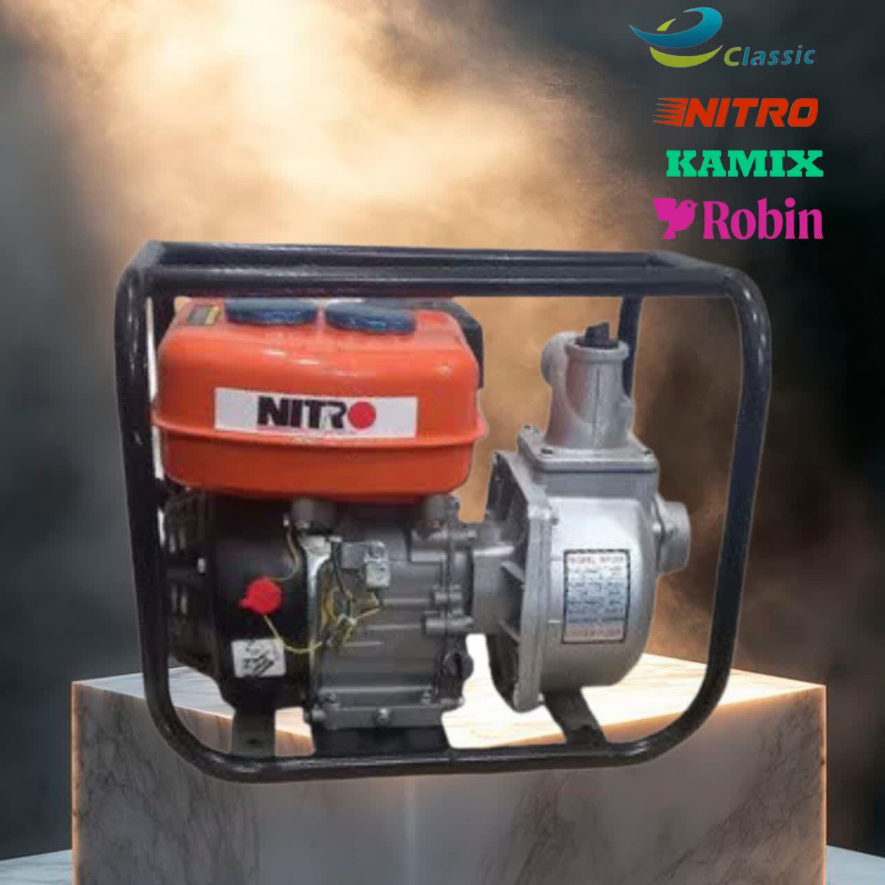 پارامترمشخصات فنی قطر دهانه ورودی/خروجی 2 اینچ (حدود 5 سانتیمتر) حداکثر دبی (دبی خروجی) معمولاً بین 130 تا 180 لیتر در دقیقه حداکثر هد (ارتفاع پمپاژ) حدود 25 تا 30 متر نوع موتور موتور 4 زمانه نیترو (بنزین/نفت) حجم باک موتور حدود 3.5 لیتر مصرف سوخت حدود 0.8 تا 1.2 لیتر در ساعت (بسته به بار کاری) توان موتور معمولاً بین 5.5 تا 7 اسب بخار جنس پوسته پمپ آلومینیوم یا چدن مقاوم در برابر خوردگی سوخت وزن تقریبی بین 20 تا 25 کیلوگرم نوع پمپ گریز از مرکز (سانتریفیوژ)