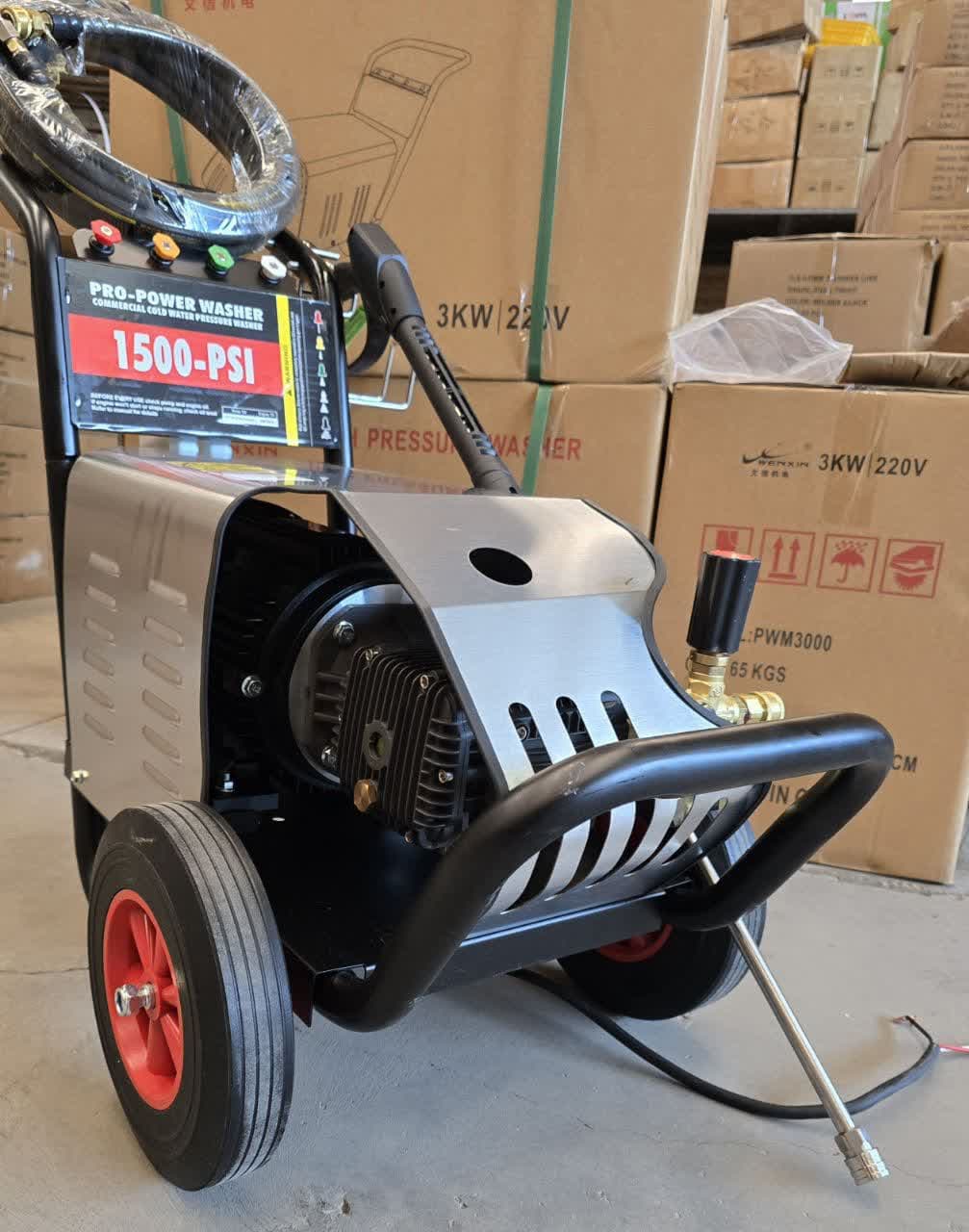 فشار کار: 150 بار نوع موتور: الکتریکی (تکفاز) توان موتور: معمولاً بین 2 تا 3 کیلووات دبی آب: در حدود 400-600 لیتر در ساعت وزن: معمولاً بین 30 تا 50 کیلوگرم طول کابل برق: معمولاً حدود 5 تا 10 متر طول شلنگ: معمولاً بین 8 تا 15 متر نوع نازل: نازل تنظیمپذیر برای فشارهای مختلف